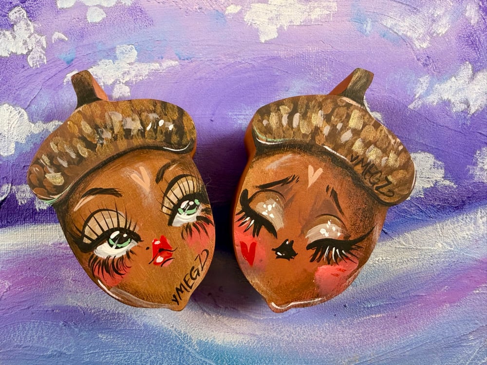 original painting on thrifted wooden acorn - approx 3”