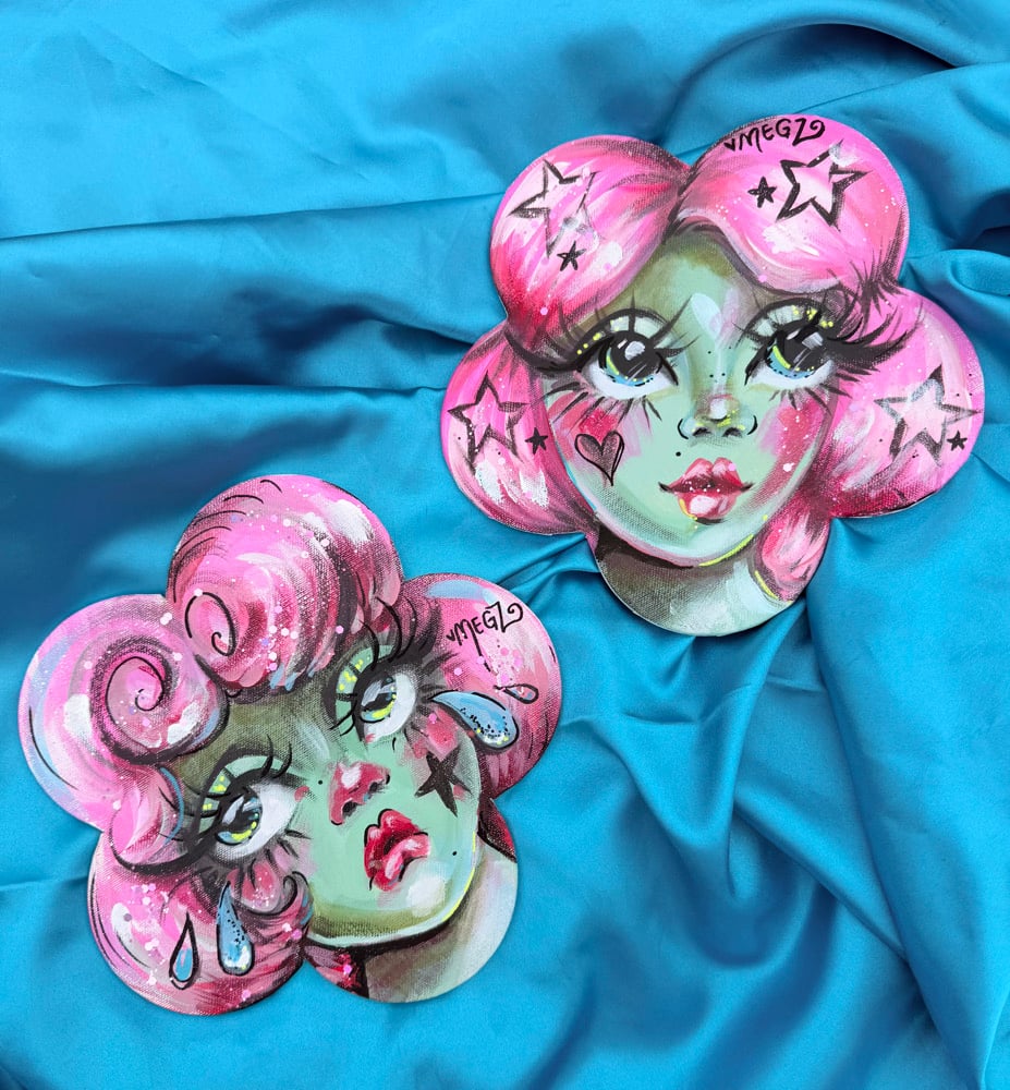 original acrylic painting on 8.5” flower canvas PANEL